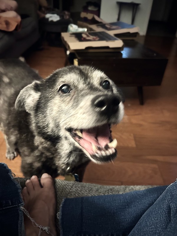 I have really been enjoying my new job, which really hasn’t started yet, but I’ve had time to get going since my other work is pretty much wrapped up. I hope the upcoming class goes well – I am making a lot of changes. Also today I started knitting a new blanket for the living room. We do not speak of what happened to the other one. Robin knows. This project should keep me busy for a while. And last, what the heck does this dog want? He does this every night and we cannot figure it out. He pants, he nudges, he paces, but he won’t go out, he just ate, has water, wriggles away when we try to pet him… I so wish he could talk sometimes because I’d love to give him what he wants!